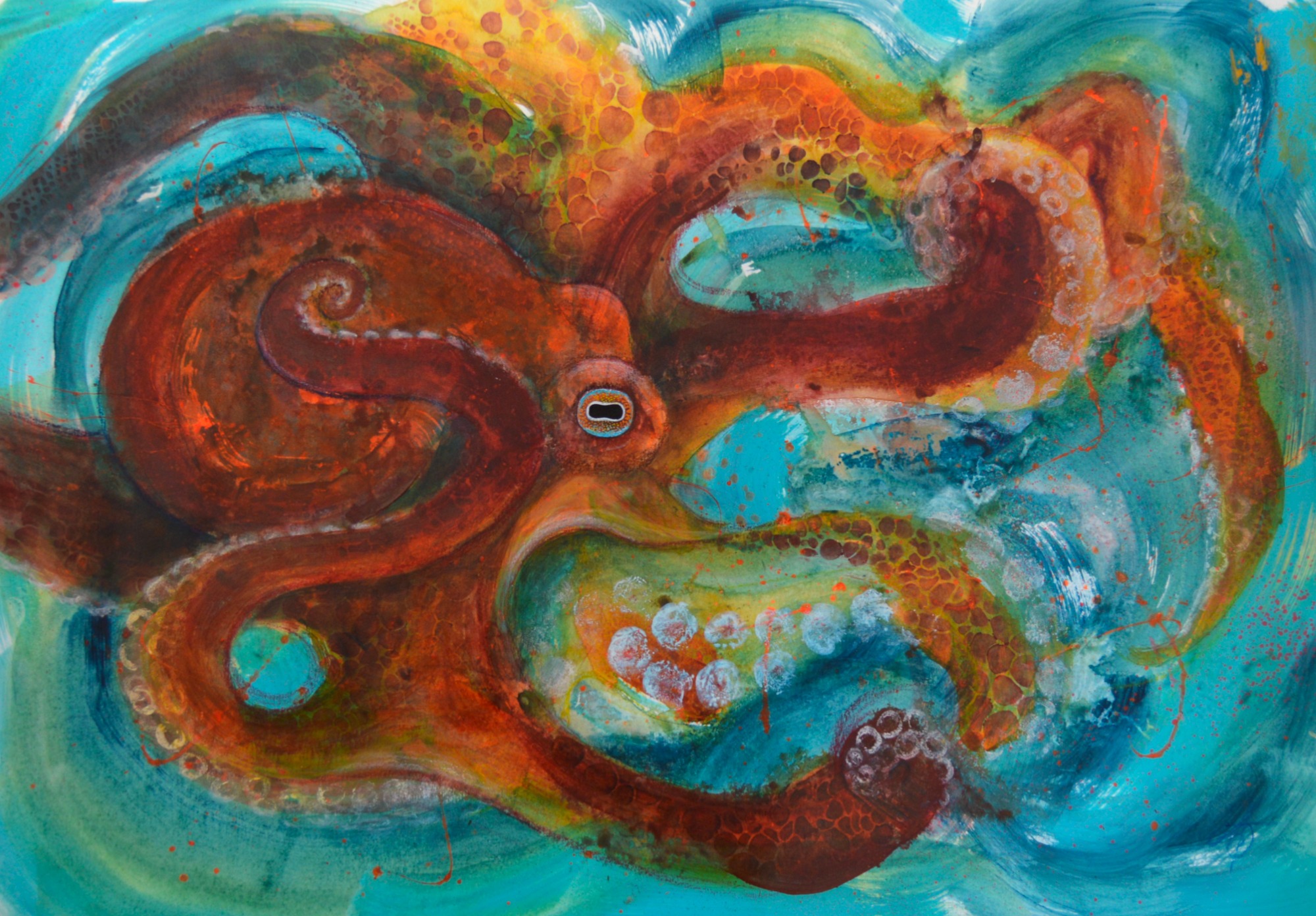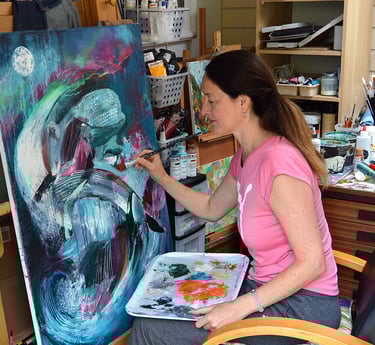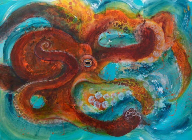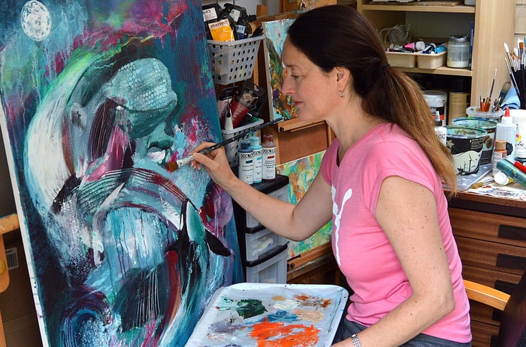 I paint semi-abstract artwork exploring themes of nature and wildlife through layers of colour and texture.