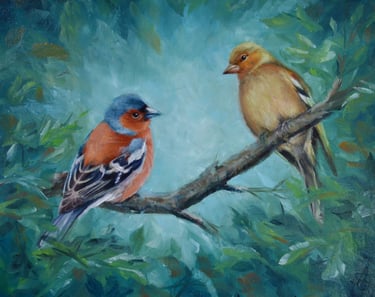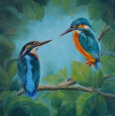 Pastel or oil paintings in a realist style.